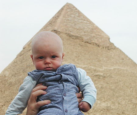 There were 3 of us: my husband, our tiny little newborn son, and me (that's our boy in the picture with the pyramid at Giza near Cairo, he was a sturdy 4 month old by then!).